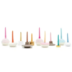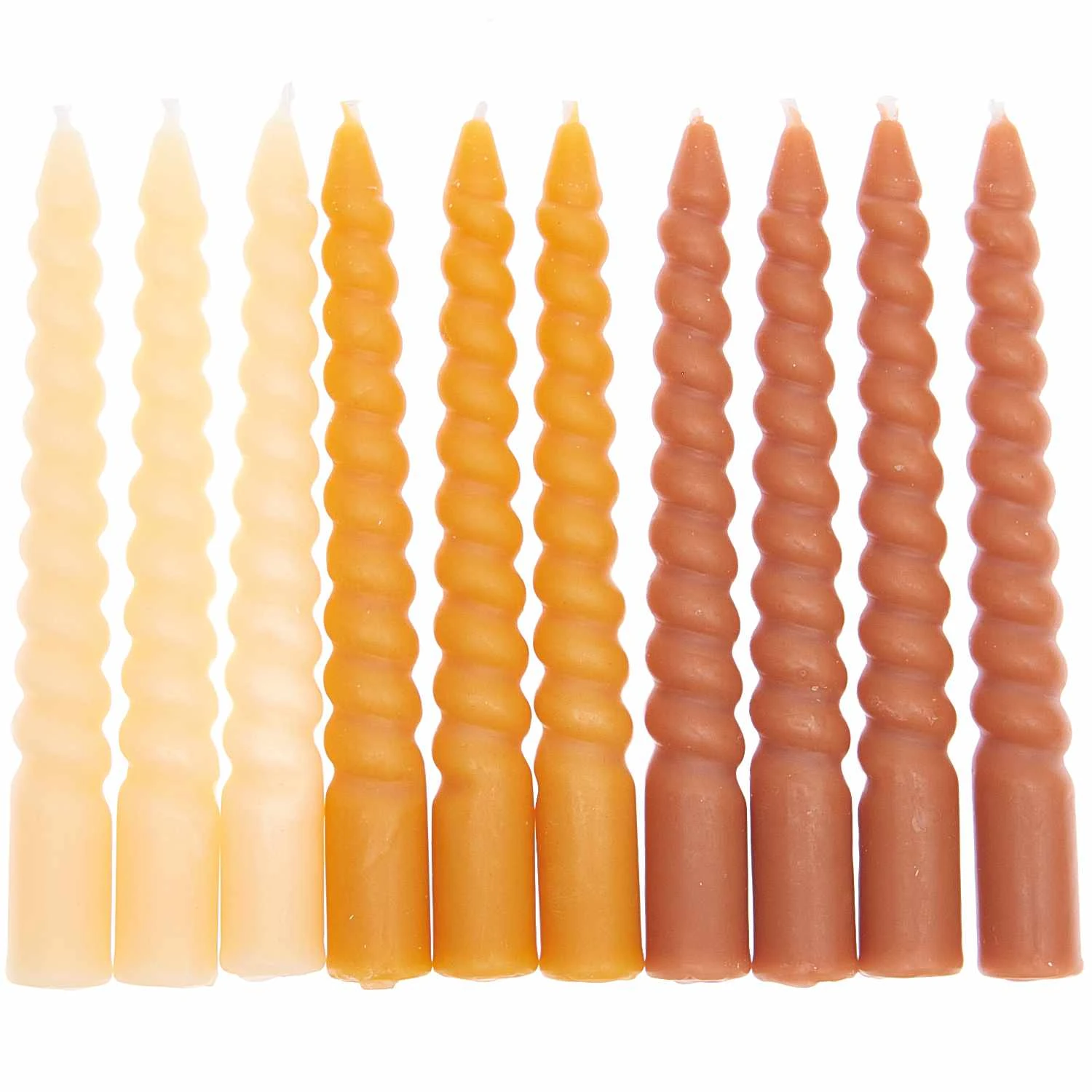Beautiful spiral candles in smoky mustard shades. The spiral silhouette makes the candles a real eye-catcher in every room. These 10cm candles make beautiful home decor but can also be used to decorate a large cake (cake candle holders sold separately). They look beautiful in candles holders, but can also be presented in a bowl of sand. They have a diameter of 1.2 cm and are about 10 cm high.