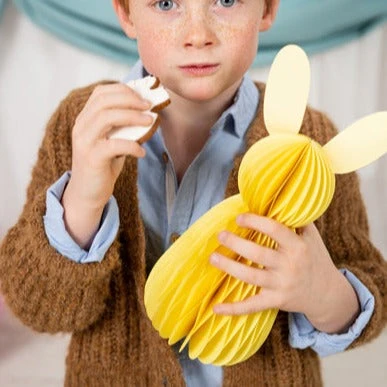 These honeycomb Easter bunnies are the perfect springtime decoration Hang in groups or place on a mantle and use again year after year.