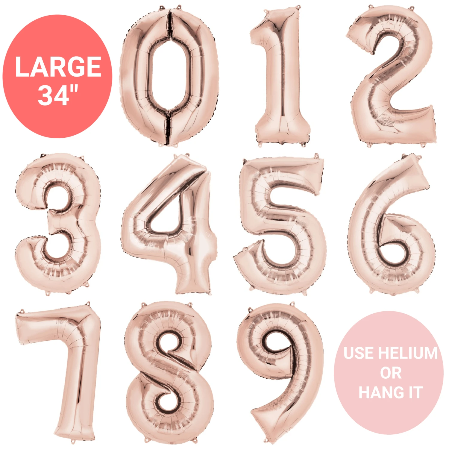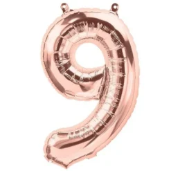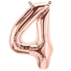 Rose gold giant number balloons are a showstopper!  Easy and quick to inflate they will arrive flat packed and have a self sealing valve. Inflate with helium or inflate with air by blowing through a straw, and hang by inserting string through the tabs on the top and bottom of the balloon.Â
