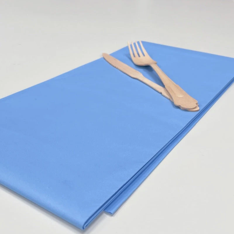 Our large blue paper tablecloth is pretty and practical. A good size, functional and durable.