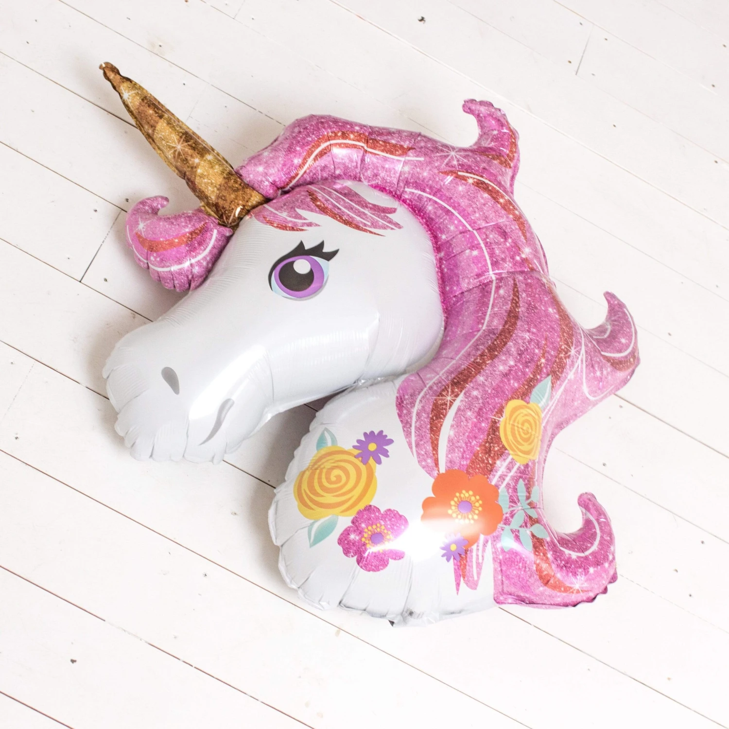 This large sparkling unicorn balloon will be cherished by little ‘believers’. Featuring flowers and sparkles this gorgeous balloon will be perfect for a rainbow party, unicorn party or pretty much any magical dreamy child’s party!