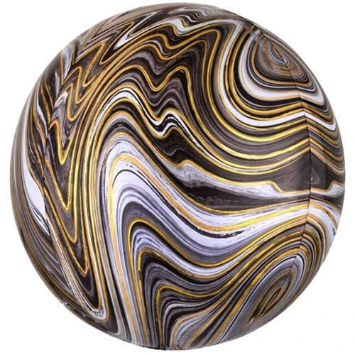 A stunning black and gold marbled orb balloon.