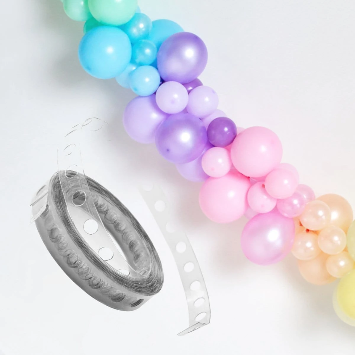 Create stunning balloon garlands, balloon clouds, and balloon walls easily with this special tape. Simply pull the balloon necks through the holes in the tape and layer it up to create magnificent displays.