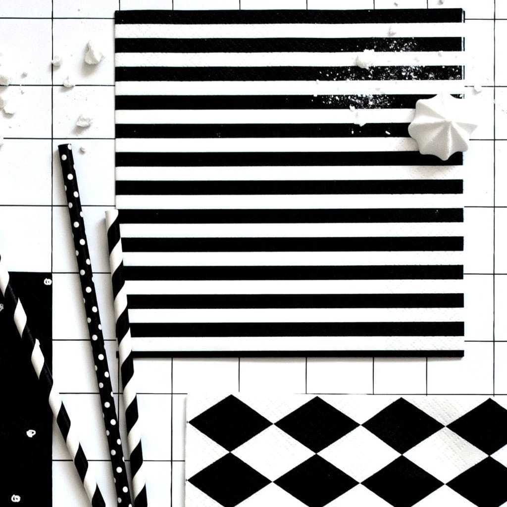 Stylish striped black and white party napkins. They will add style to any table setting.