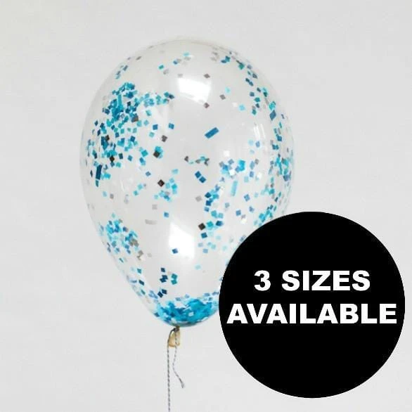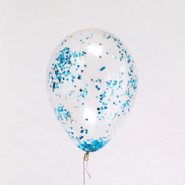 Each gorgeous balloon is filled with a generous handful of our Mix of Blue Sprinkle Confetti and a dash of silver metallic confetti squares.