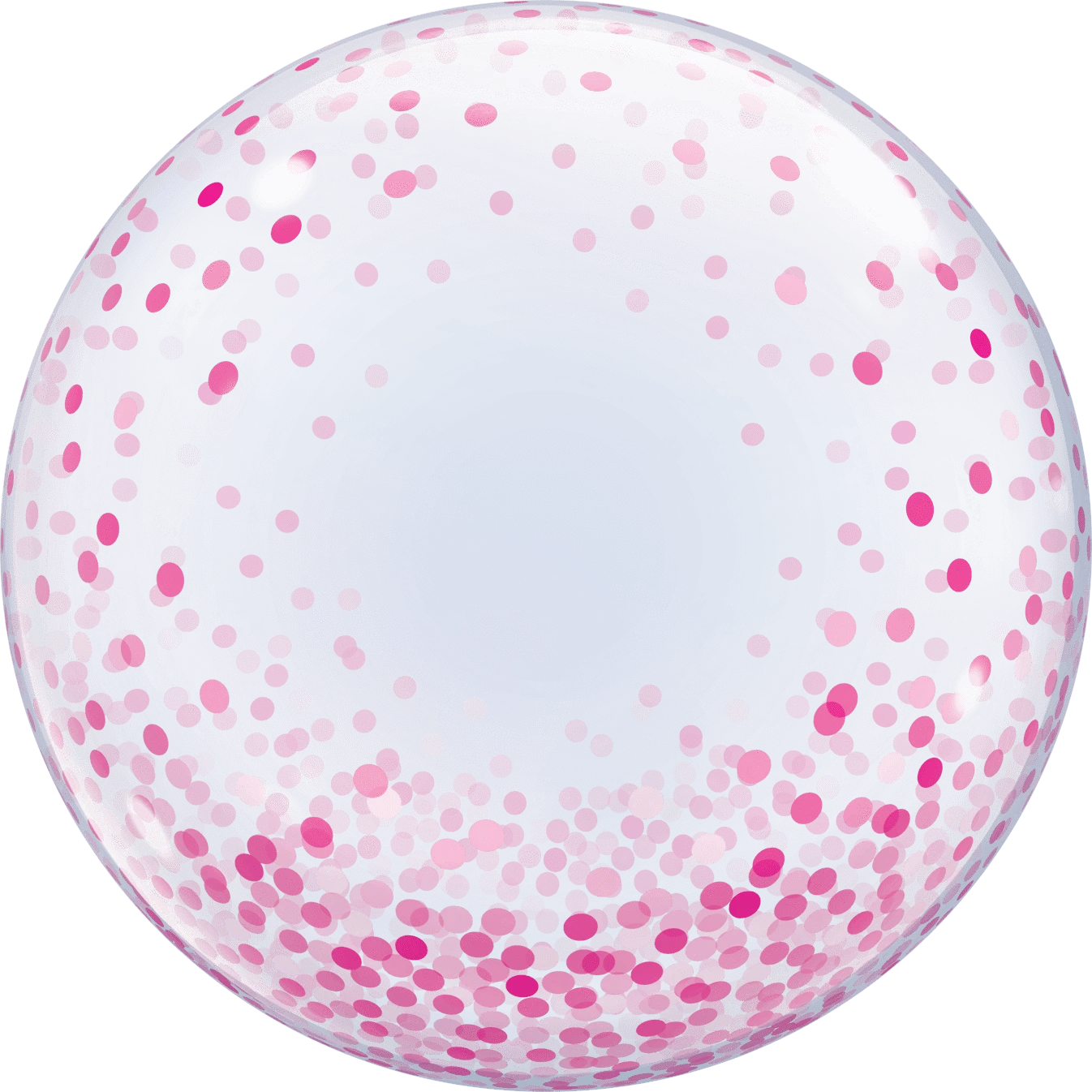 This bubble balloon is completely transparent and covered in pink printed confetti dots!