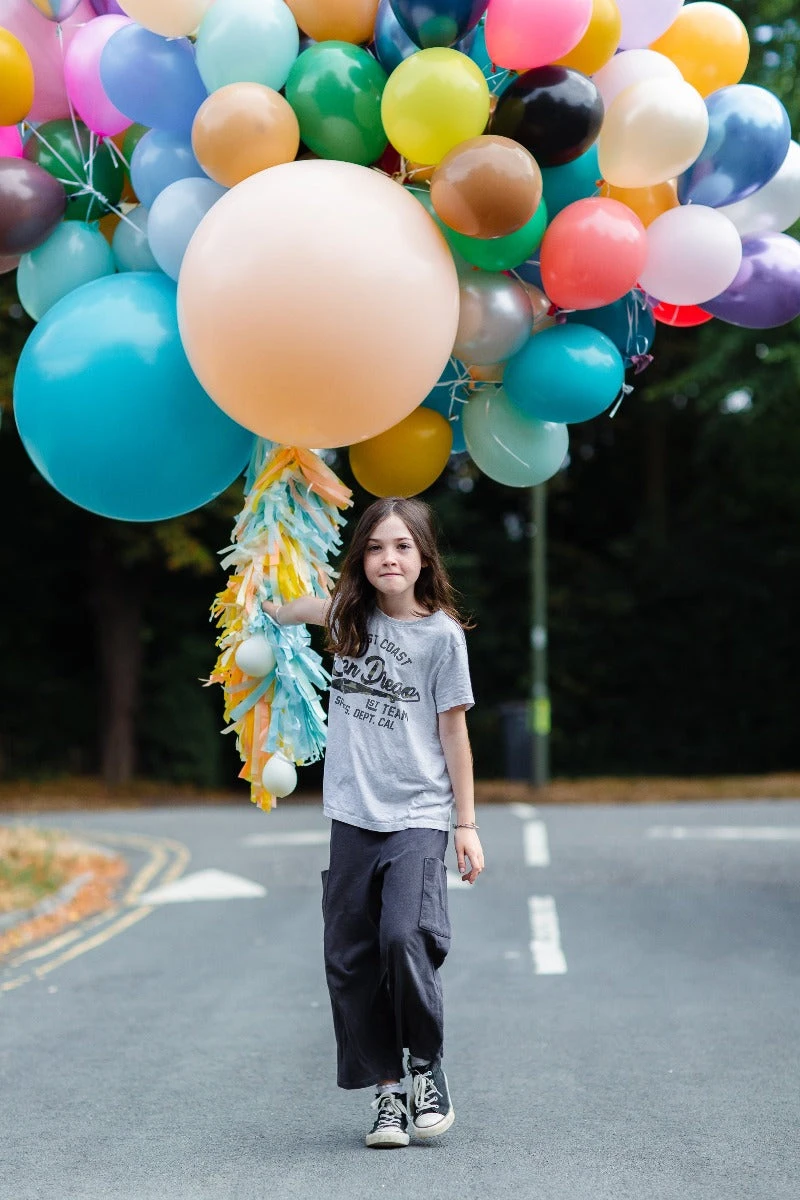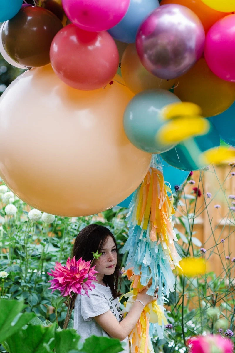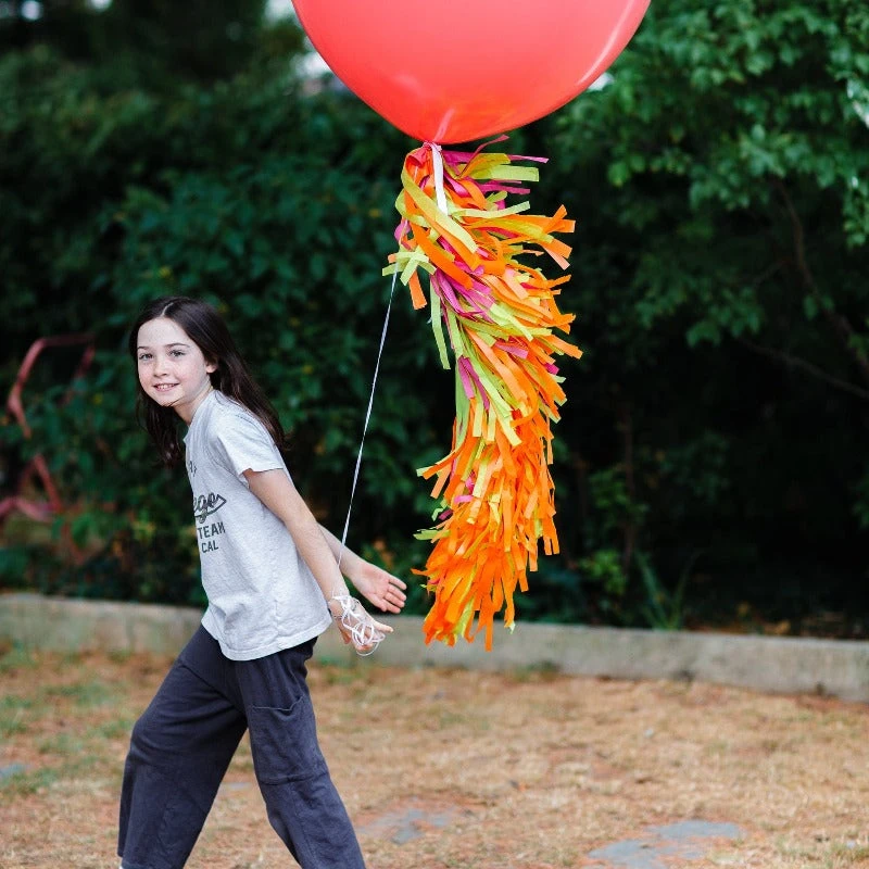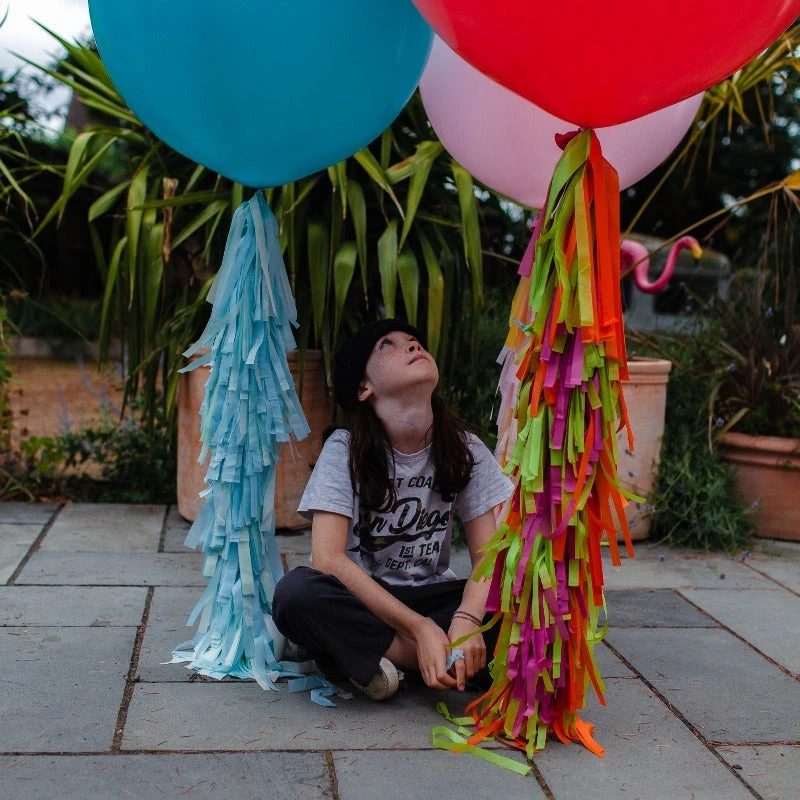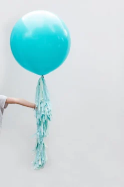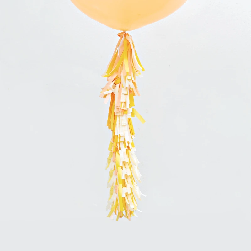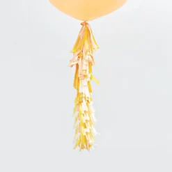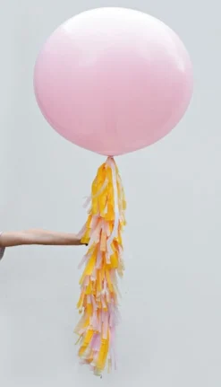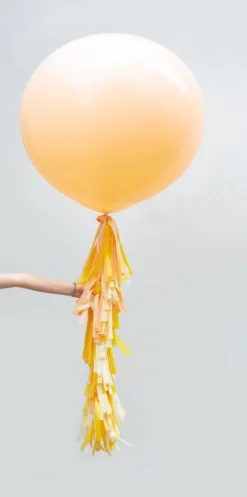 The tassel arrives in one long piece, all you need to do is give the tassel one big shake to fluff up then tie the end ribbon to your balloon, it couldn’t be easier!