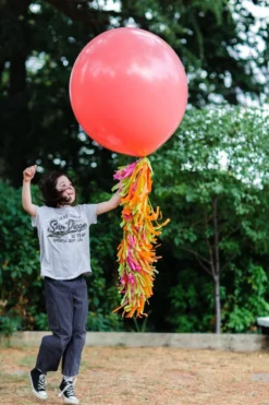 - The tassel hangs down 38″ from the bottom of the balloon