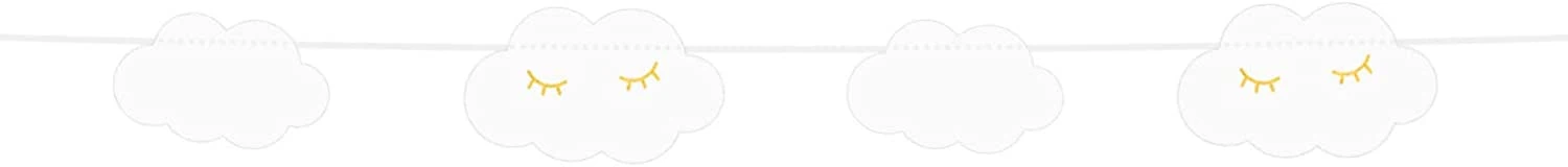 A cloud garland, a sweet string of sleeping fluffy clouds, can be hung in a bedroom or in a house during a baby shower, carnival or a birthday party!