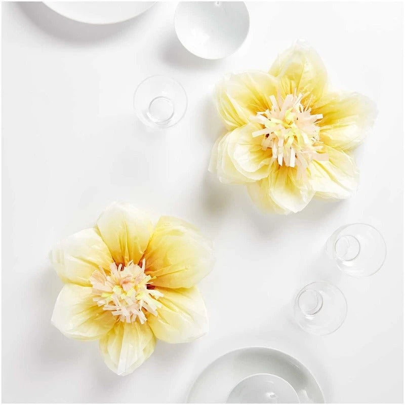 These 2 27cm diameter daffodil are just so pretty! Each pack contains two paper flowers in pretty yellows. Use as a table, wall or hanging decoration or add to a balloon display. Instructions included.