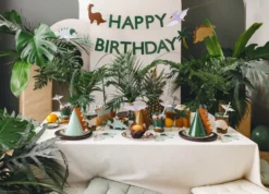 The ultimate Birthday banner for budding palaeontologists! The set contains letters, dinosaurs and approx. 4m of twine, simply string the letters together.