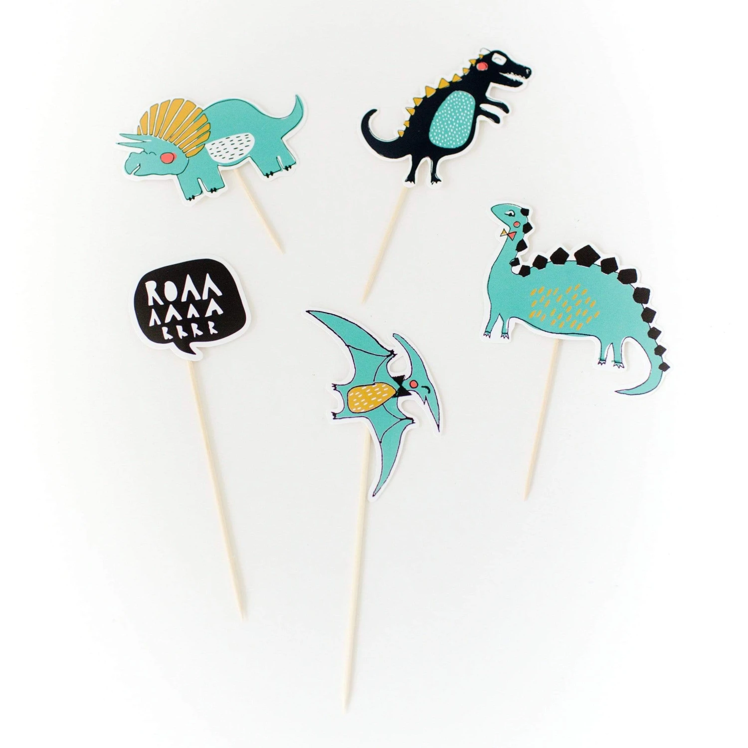These crazy dinosaurs love cakes! Cake toppers perfect for a dinosaur themed party.