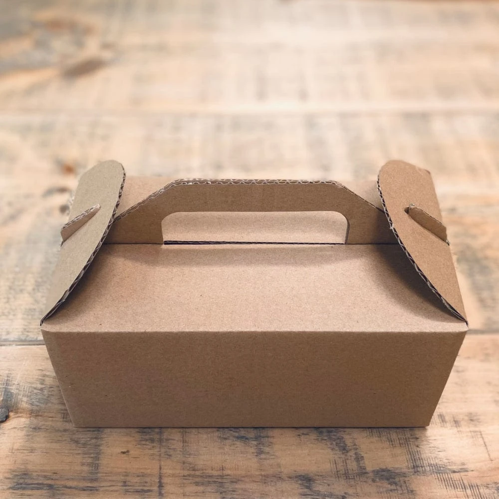 This corrugated cardboard carry box or picnic box is an ideal strong box for packing up picnic lunches or for creating special ‘meal kit’ style gifts or hampers. We have used them as doughnut decorating kits and for Mothers Day Brunch’s.