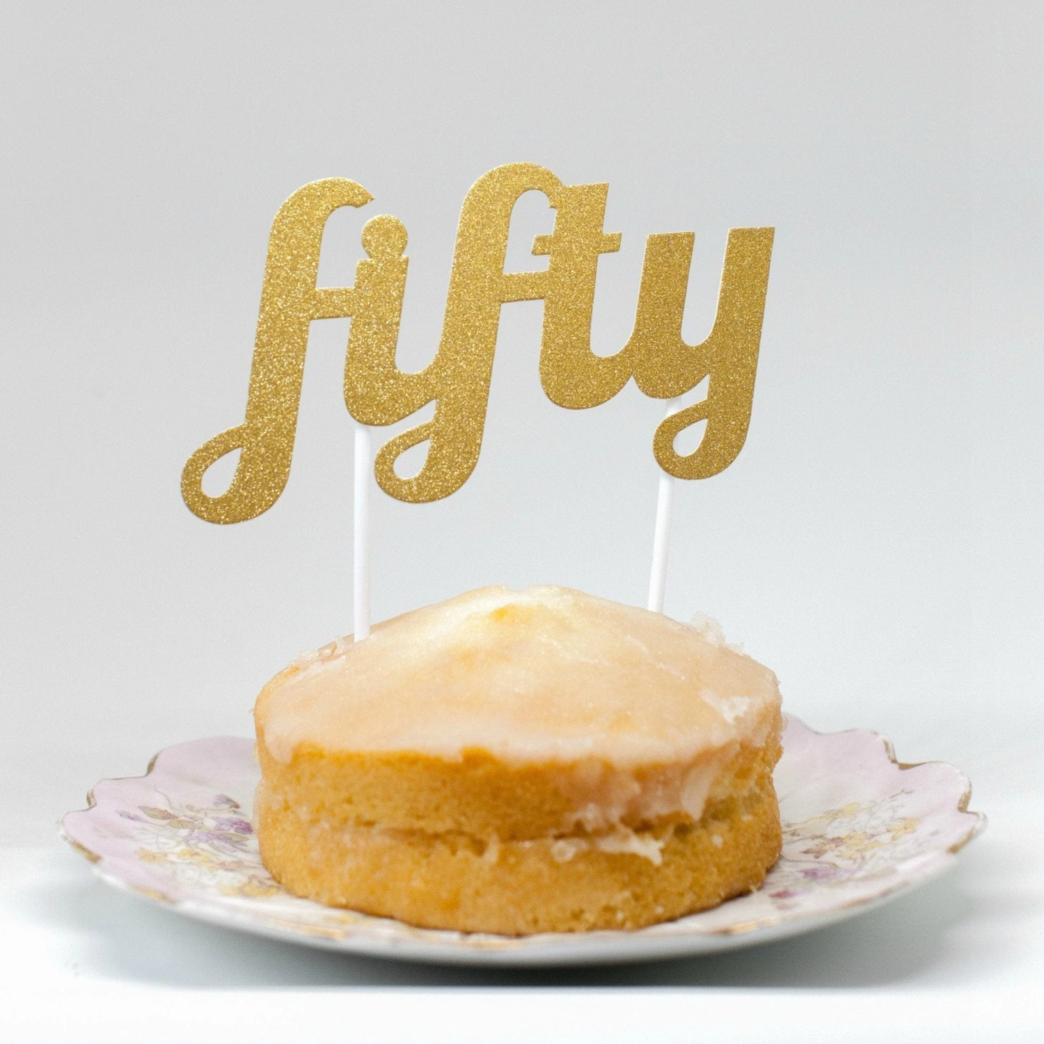 This large number 50 cake topper is the perfect addition to a Fiftieth Birthday celebration. The topper is made from sparkly gold sturdy card with plastic food safe sticks for inserting into the cake. (The back of the topper is white)