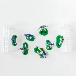 Football players measure 5.5cm – 6cm tall approx and the goals measure 10cm x 6.5cm approx.