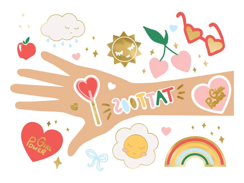 Fun and colourful mix of temporary tattoos! Easy to apply and gentle on the skin, this pack contains transfer instructions and 14 fun tattoo designs.