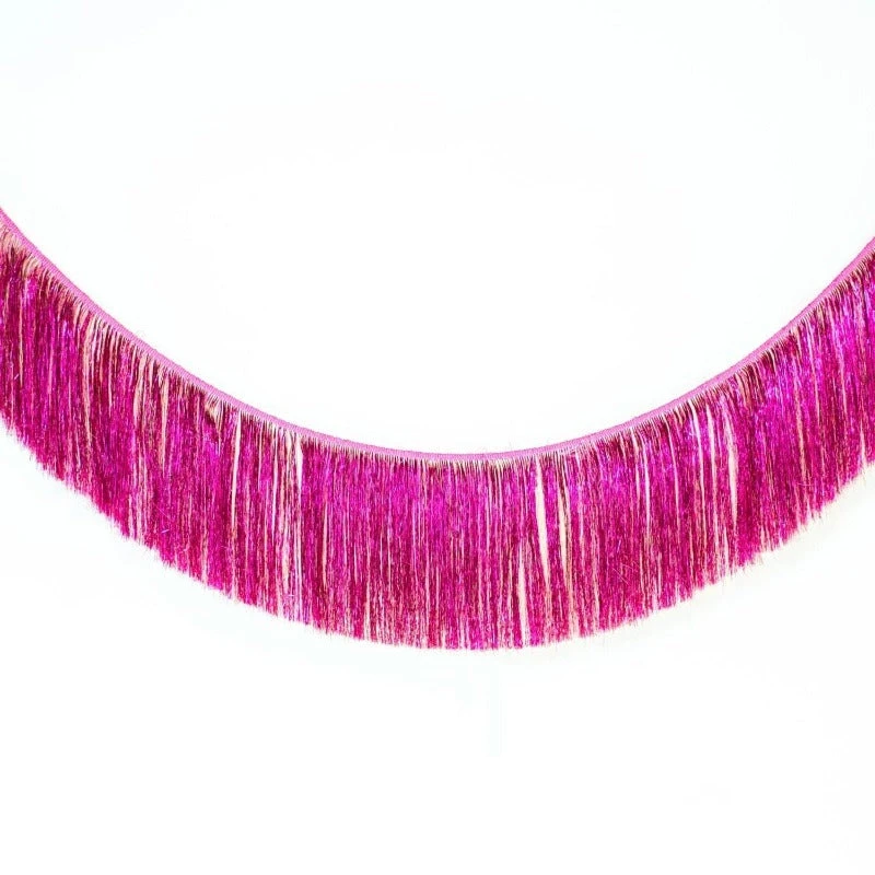 Tinsel Fringe Garlands add style and shimmer in seconds. At an incredible 9 meters long this tinsel fringe garland will look great at any party or celebration where you want a touch of glamour. Hang on a feature wall or layer a few for impact or perhaps cut into sections and hang from giant balloons.