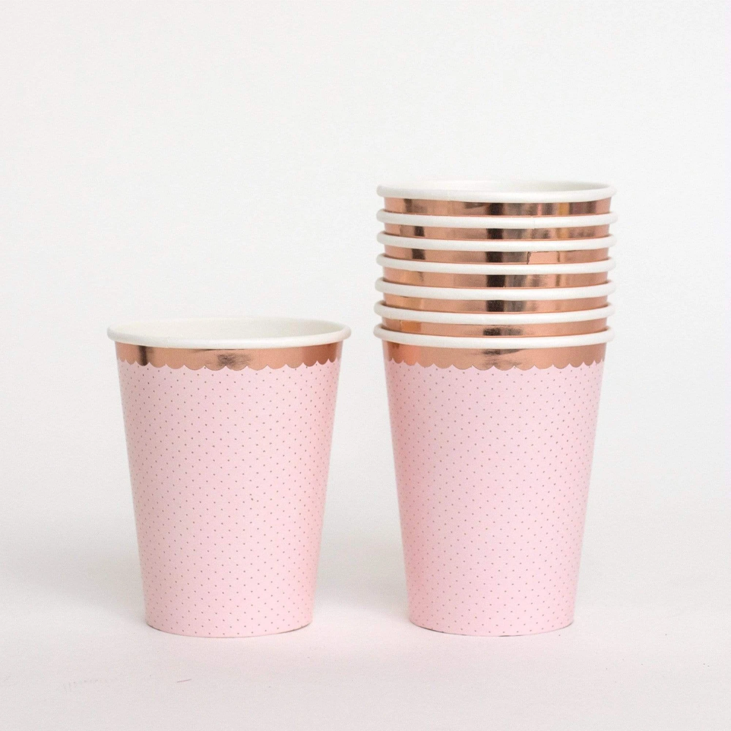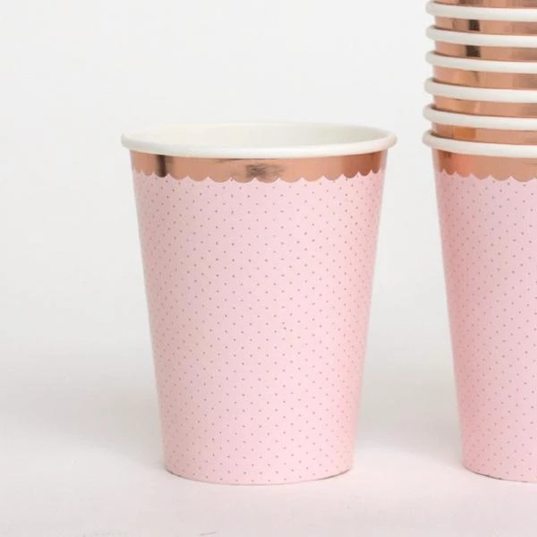 These pink dotty Rose Gold foiled cups are as pretty as a picture.