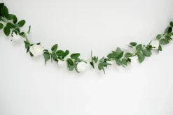 This pretty blowsy floral garland is covered in foliage and beautiful peony like flower heads in soft white.