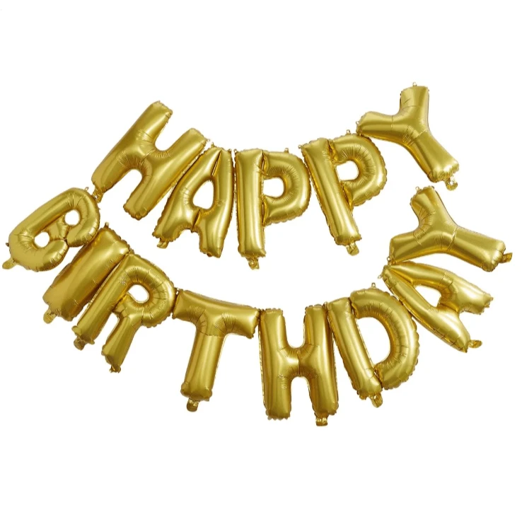 This gold balloon bunting spells out “Happy Birthday” and can be hung on string.