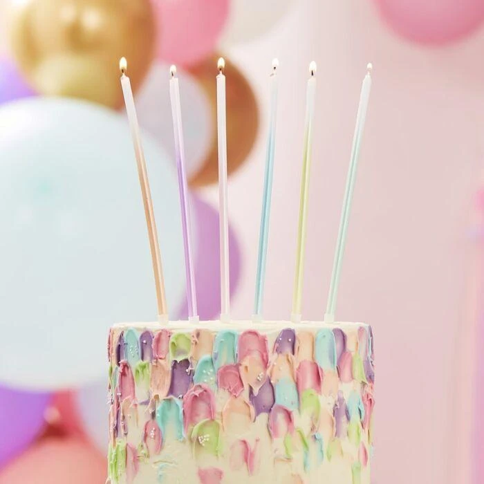 Pretty ombre effect pastel cake candles. These tall pastel candles are simply all you need to adorn your special birthday cake.