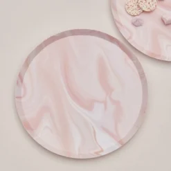 Each pack includes 8 x pink marble paper plates measuring 25cm in diameter.