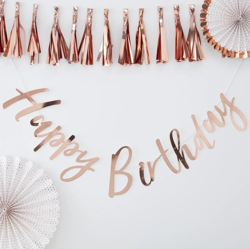 Rose gold happy birthday garland – perfect for any birthday celebration!Â