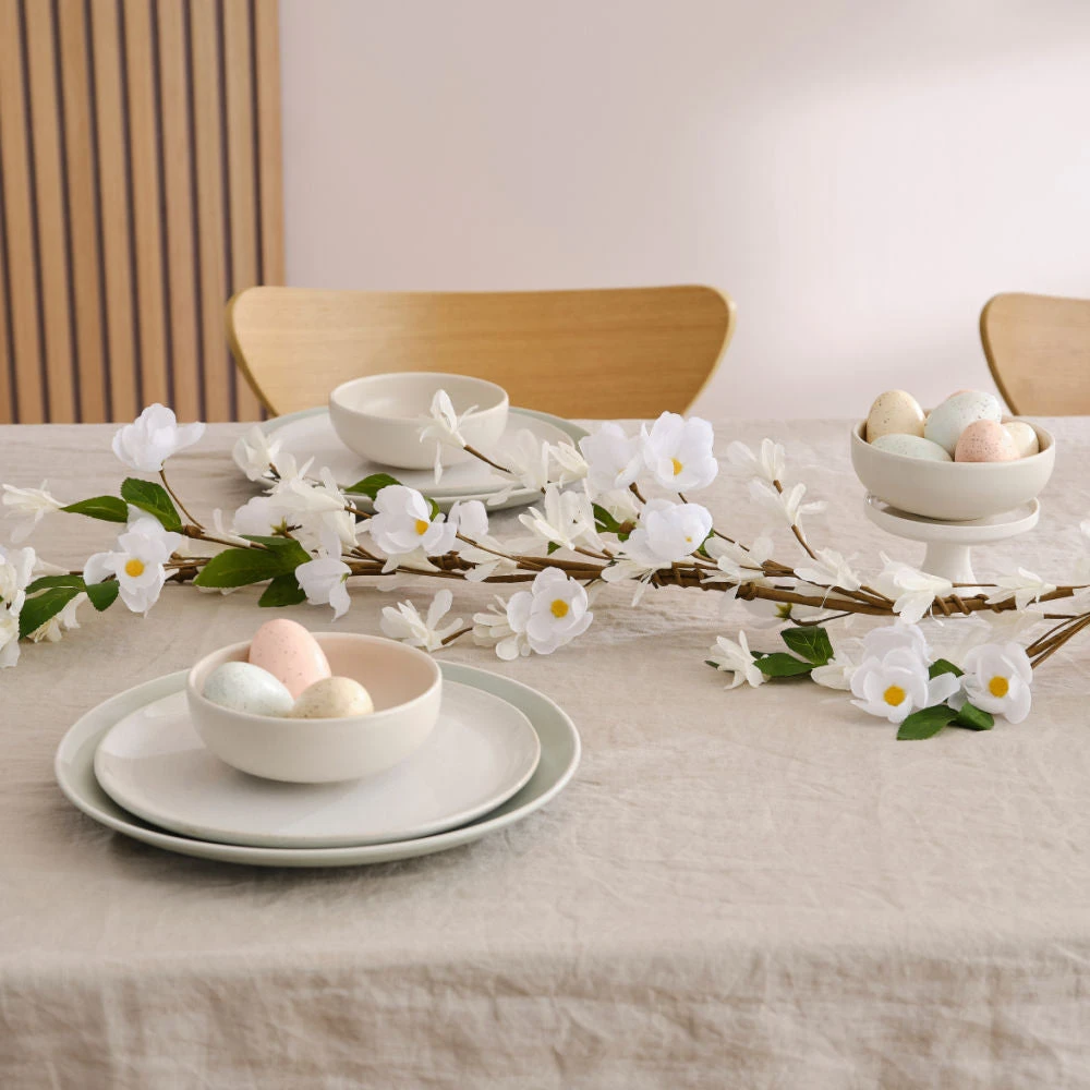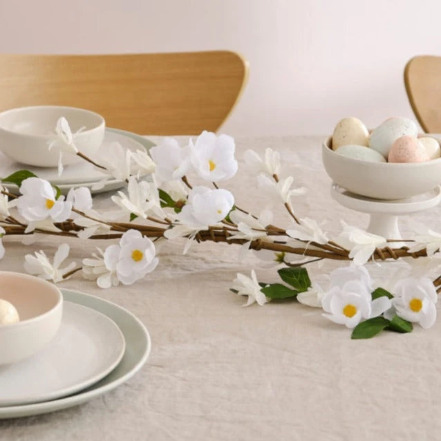 This beautiful white blossom artificial flower garland is perfect addition to your decor. Lay across tables, hang over doorways and walls, or wind around furniture. this gorgeous decoration is a large and very full garland with lots of sprays of flowers and foliage.
