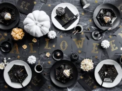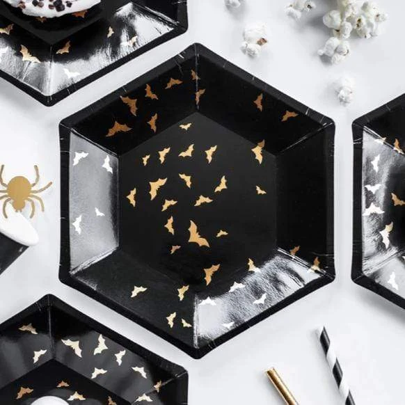 Halloween Party Plates that are stylish as well as spooky! These cool little plates are covered in gold foiled bats.