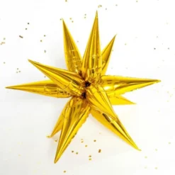 These large gold starburst Balloons are simply stunning. Each balloon consist of 12 individual balloons that are simply twisted together to create this massive starburst shape. This balloon can be hung from the ceiling or simply placed around the room as decor.  They look spectacular added to a balloon garland or backdrop. Airfill only.