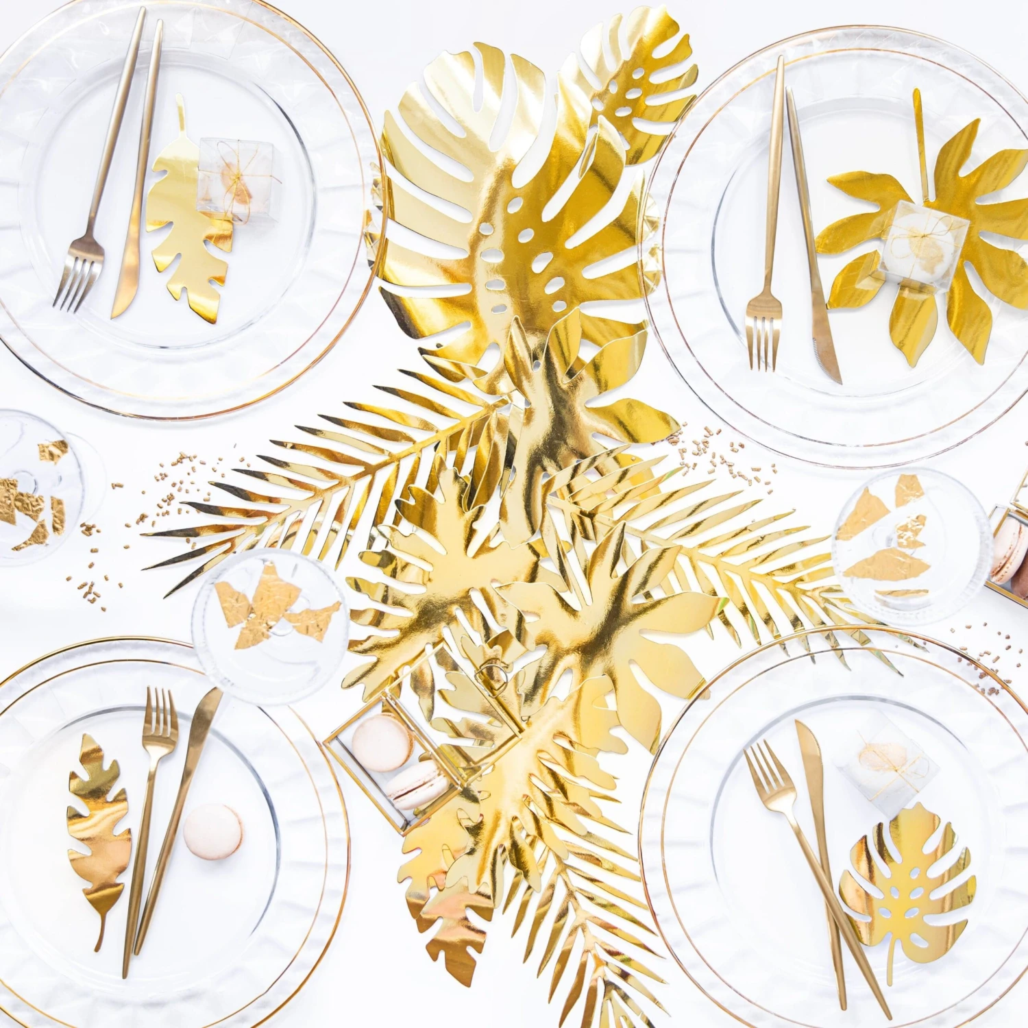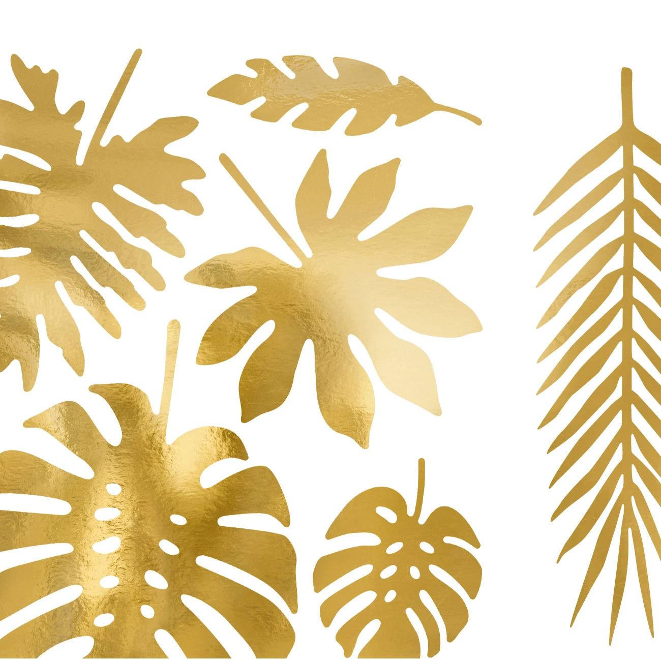 We love this huge set of shiny golden tropical leaves! This huge pack of leaves contains 21 leaves, seven types of leaf, 3 of each type. Any tropical celebration from a Luau, Hawaiian or a Tropical themed wedding would benefit from these fabulous paper leaves. Decorate a table, attach to a backdrop, create a garland or use as place settings.