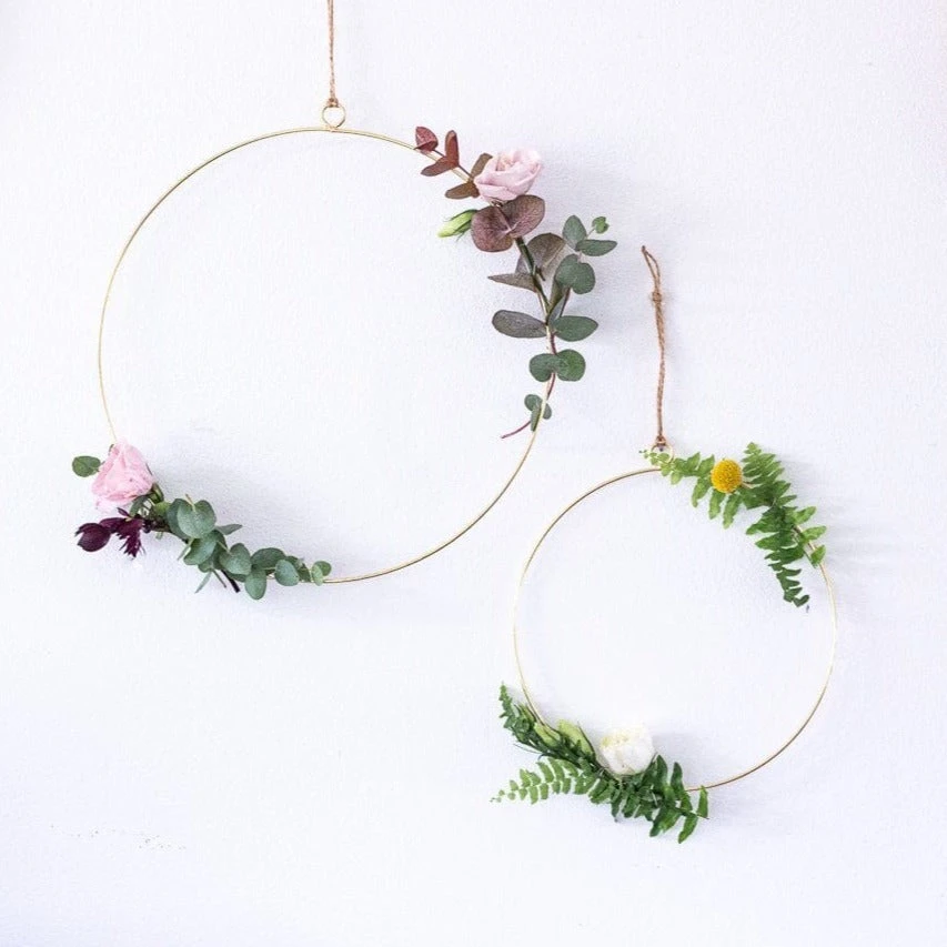 Add your own personal touch to these gold hoops using your favourite seasonal flowers and foliage, or simply add a touch of pretty fabric or ribbon, or even add tiny balloons and create a balloon wreath. Each pack contains two hoops in two sizes.
