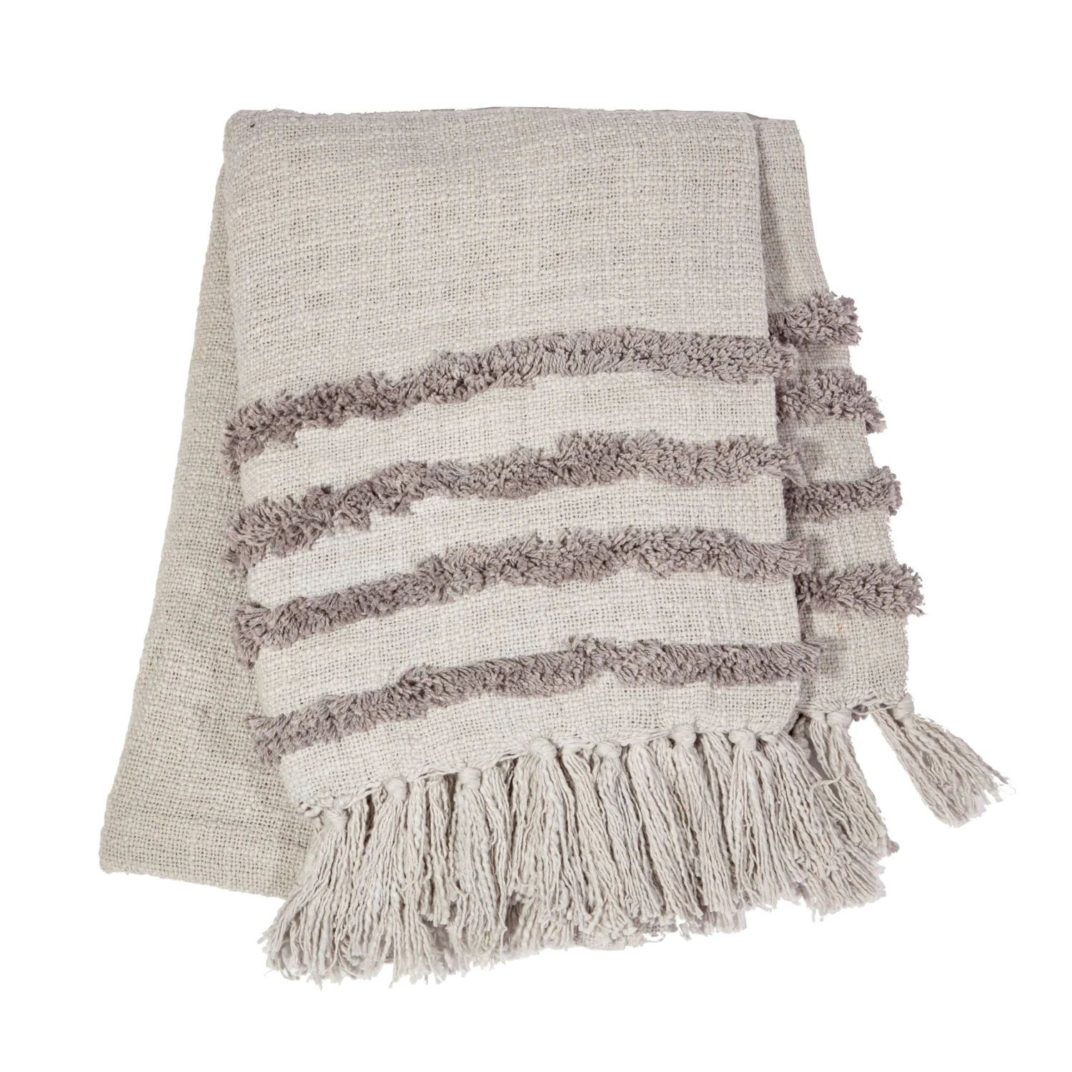 Enjoy and embrace the bohemian style of this cosy blanket throw, featuring a beautiful tufted stripe and tassels. The gorgeous woven details are created with a natural colourway of grey tones. Perfected to picnic on or to snuggle up with.
