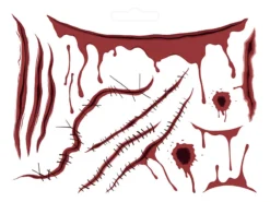 A spooky Halloween mix of temporary tattoo scars blood and gore! Easy to apply and gentle on the skin, this pack contains transfer instructions and 13 tattoo designs.