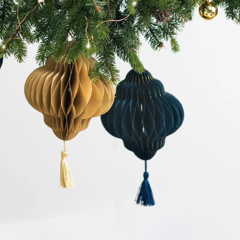 A beautiful dark navy honeycomb decoration with fancy tassel, perfect for celebrations! A lovely large honeycomb, perfect for your Christmas table, mantlepiece or to hang on a large tree.
