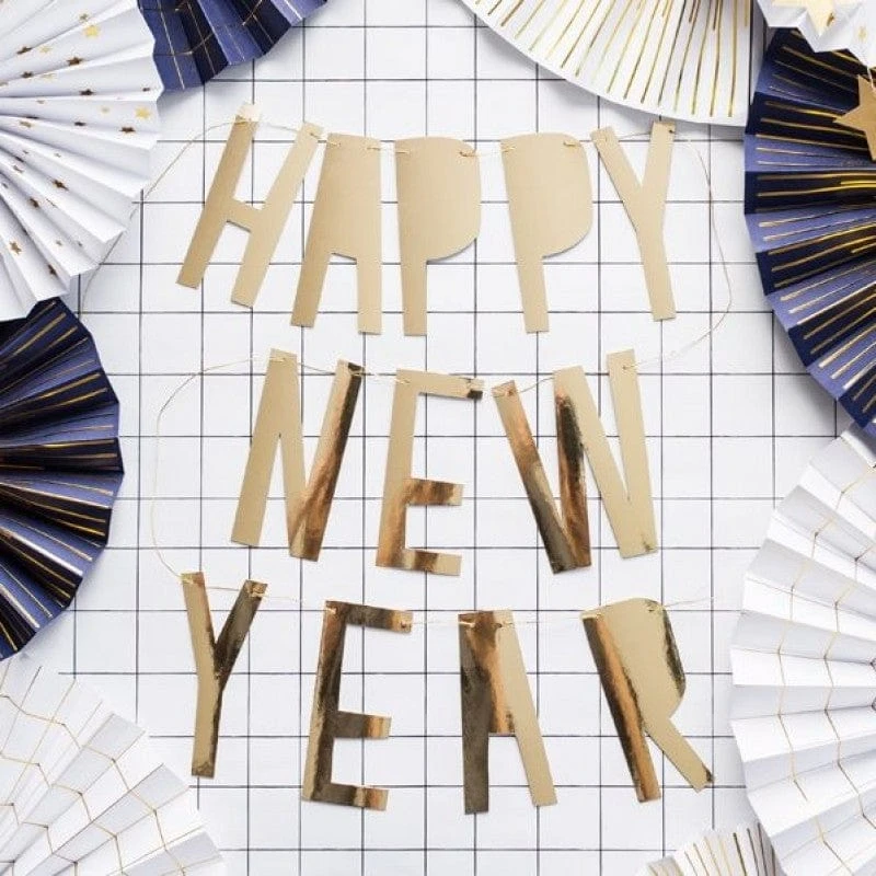 Welcome in the New Year with this Festive Happy New Year Party Banner. It features giant golden letters saying “Happy New Year!”, and includes the string needed to tie it up!