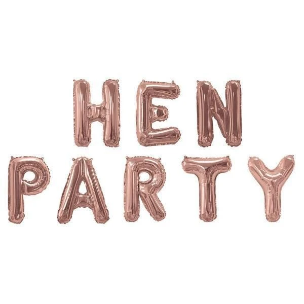 This ‘Hen Party’ balloon bunting with trendy rose gold finish is the perfect eye-catcher for your party. No helium is needed to inflate these shiny 16″ balloons.
