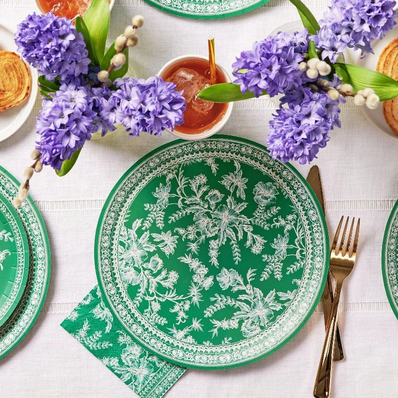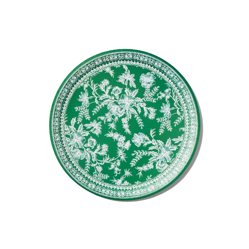 Timeless toile with a modern emerald backdrop, these high quality paper plates are an easy way to create a vibrant tablescape. Let them take centre stage, or pair them with other patterns for an eclectic vibe.