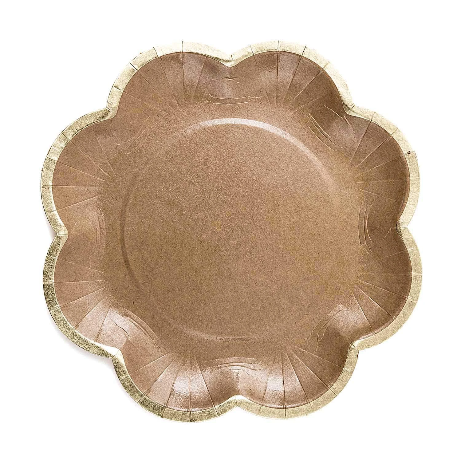 These pretty kraft flower shaped party plates are stylishly simple. Edges with gold foil for a touch of luxury
