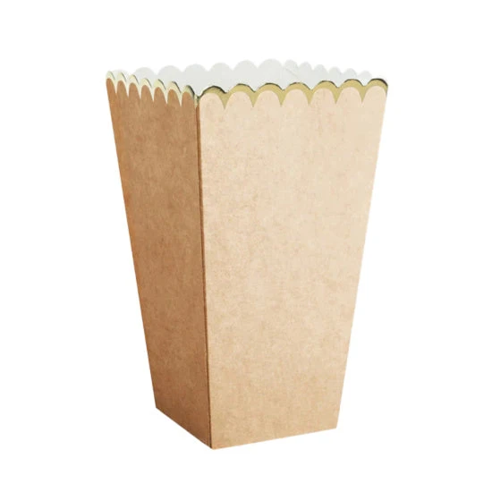 Popcorn Boxes for movie parties, circus parties, teen parties and fun celebrations! Kraft with pretty gold foiled scalloped rim.