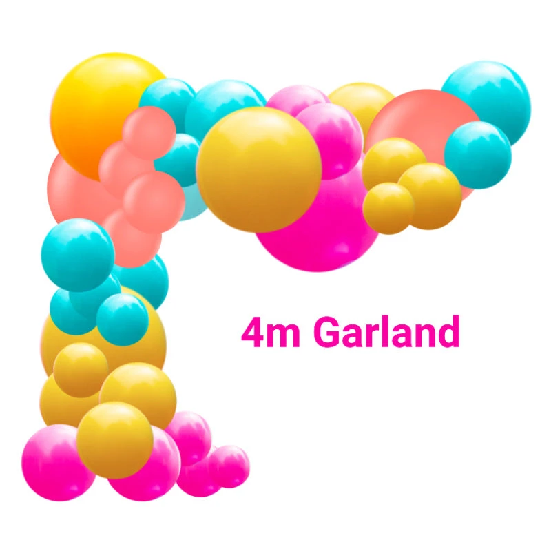 Garland is approximately 2 metres/4 meters when assembled and we recommend using a balloon pump