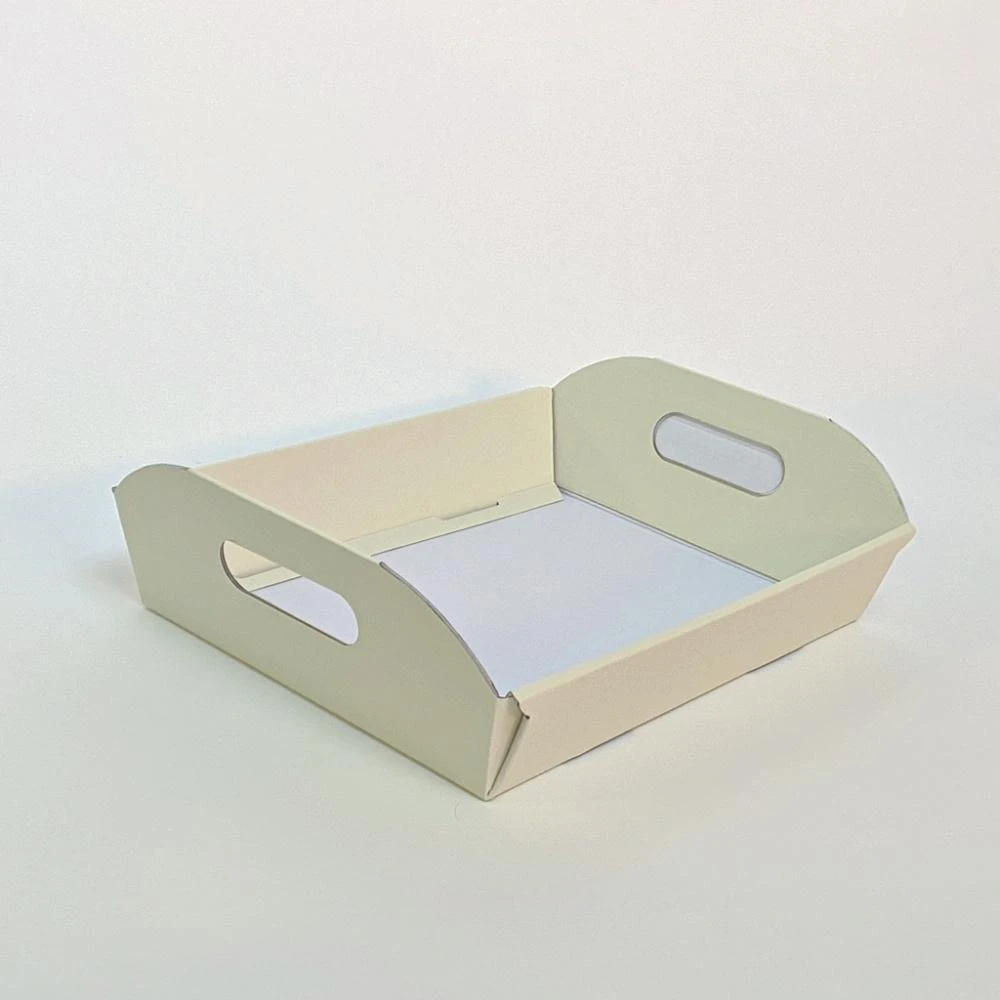 This ivory snack tray is ideal for serving snacks and party food at a BBQ, party or celebration. This disposable platter makes cleaning up quick and convenient. These trays also make fabulous hampers for gift giving. Made from a thick sturdy cardboard, strong enough to serve drinks.