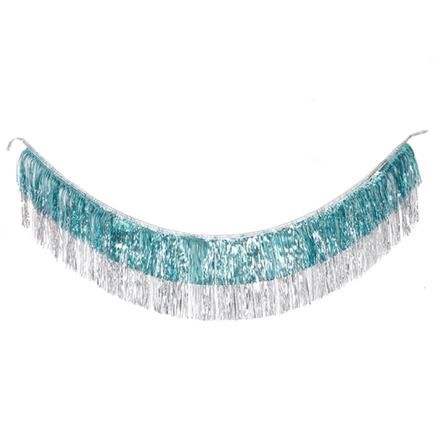 4 layer fringe garland in aqua blue and silver