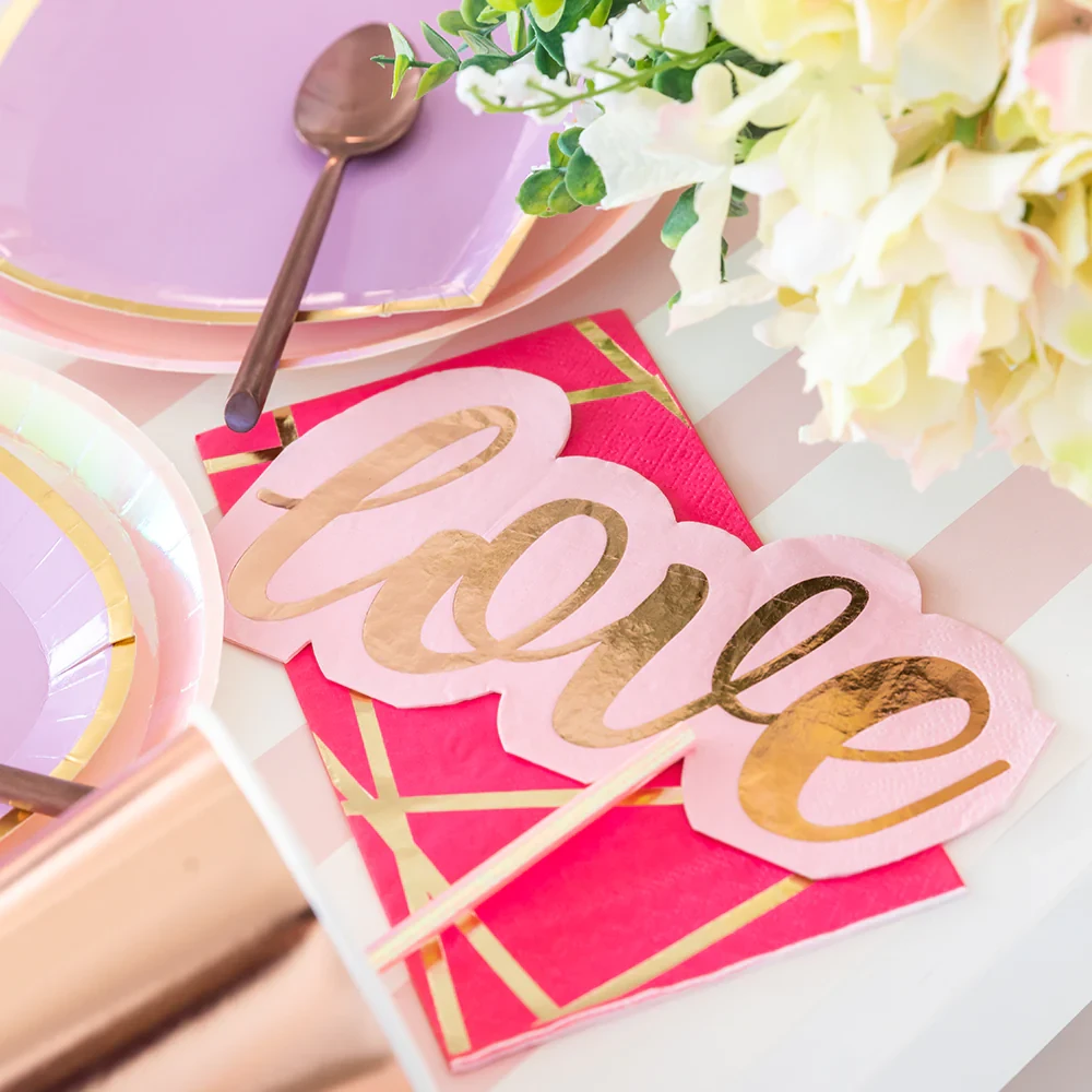 These gorgeous ‘Love’ napkins are perfect for weddings, anniversaries, Valentine’s Day, or just to say “I love you.” Pretty Pink with Rose Gold Foiling.