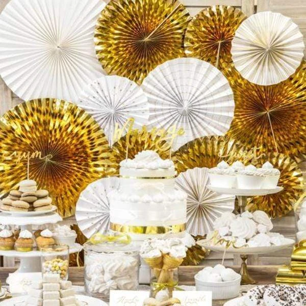 3 beautiful gold foil party fans. Simple and elegant, the perfect decoration for weddings and special events.
