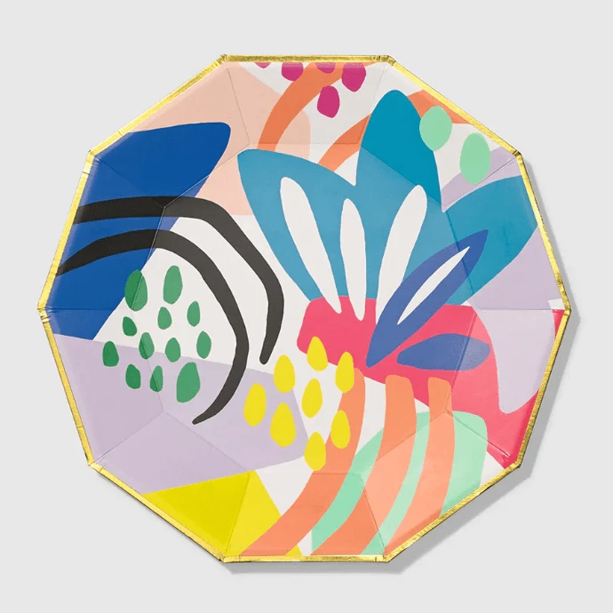 Our Matisse Large Plates are so elegantly playful you’ll want to stare at them for a moment before actually putting food on them. Perfect for tablescape fans they feature a geometric shape that accents the artful collage, plus, these plates are sturdy enough to hold the heartiest potato salad.