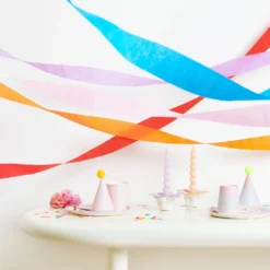 This fantastic set brings you 90 meters of extra wide streamers in a beautiful mix of 9 modern rainbow colours. It’s all you need and more to decorate your entire party room!