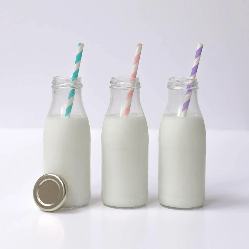 Mini glass milk bottles are perfect for serving drinks at any occasion; parties, weddings, or picnics. The perfect size, cute but not too small make them great for kids and adults alike. Fill with milkshake, smoothies or cocktails!