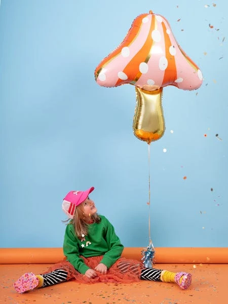 A beautiful Balloon for Fall and Christmas! This huge Mushroom balloon features golden highlights and a sprinkle of snow, they make amazing photo props when filled with helium but can also be air filled and placed as a centerpiece or party decoration.