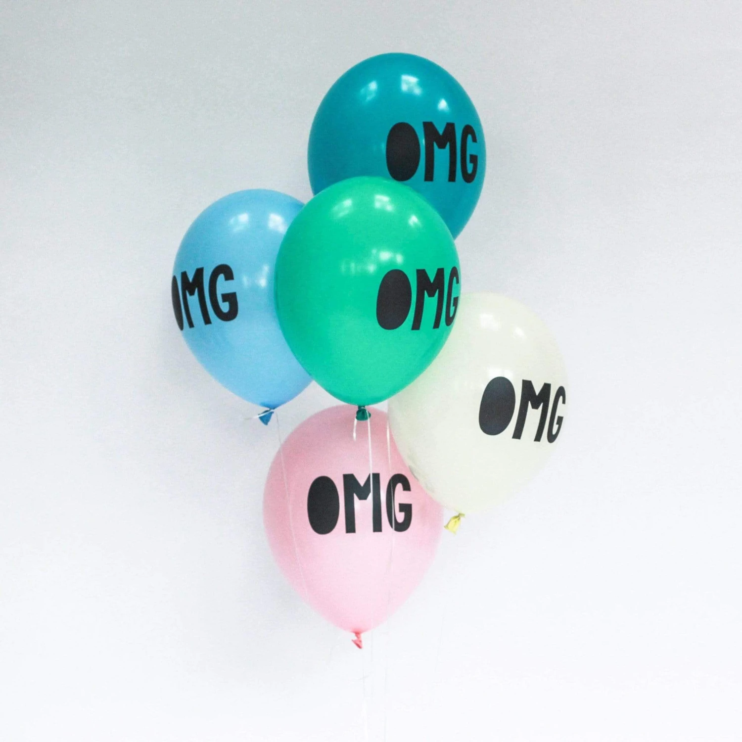 These fun ‘OMG’ Balloons have been designed exclusively for Pretty Little Party Shop. These cool balloons are sure make your guests smile, perfect for celebrations and parties with these stylish and modern balloons.Â